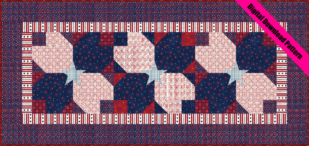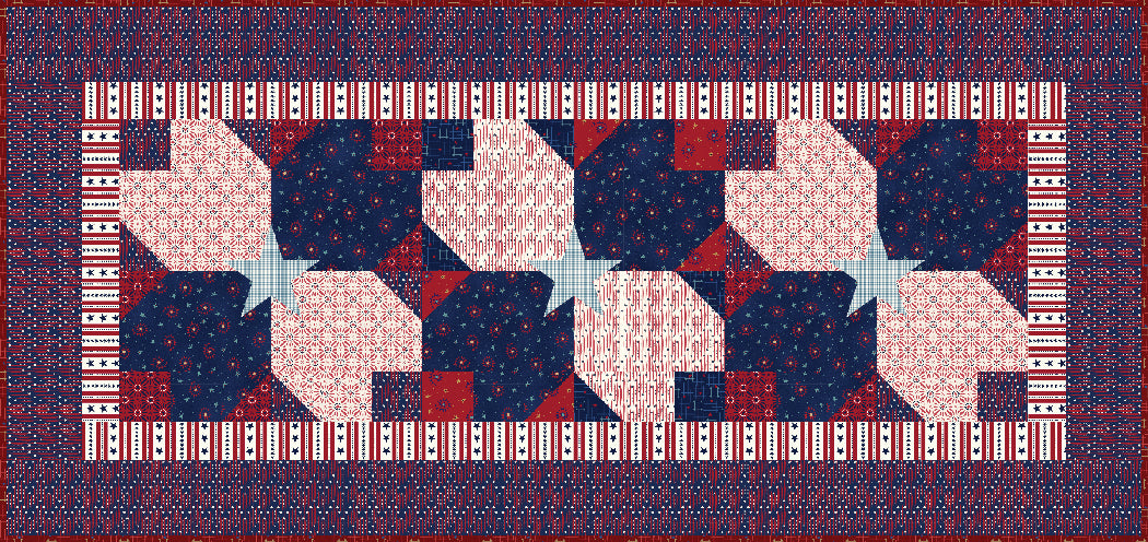 Create a stunning 45" x 21" patriotic quilt runner with the American Dream pattern by Matthew Pridemore of The Whimsical Workshop. Perfect for advanced/confident beginners, this vibrant design features pieced blocks and small appliqué stars.