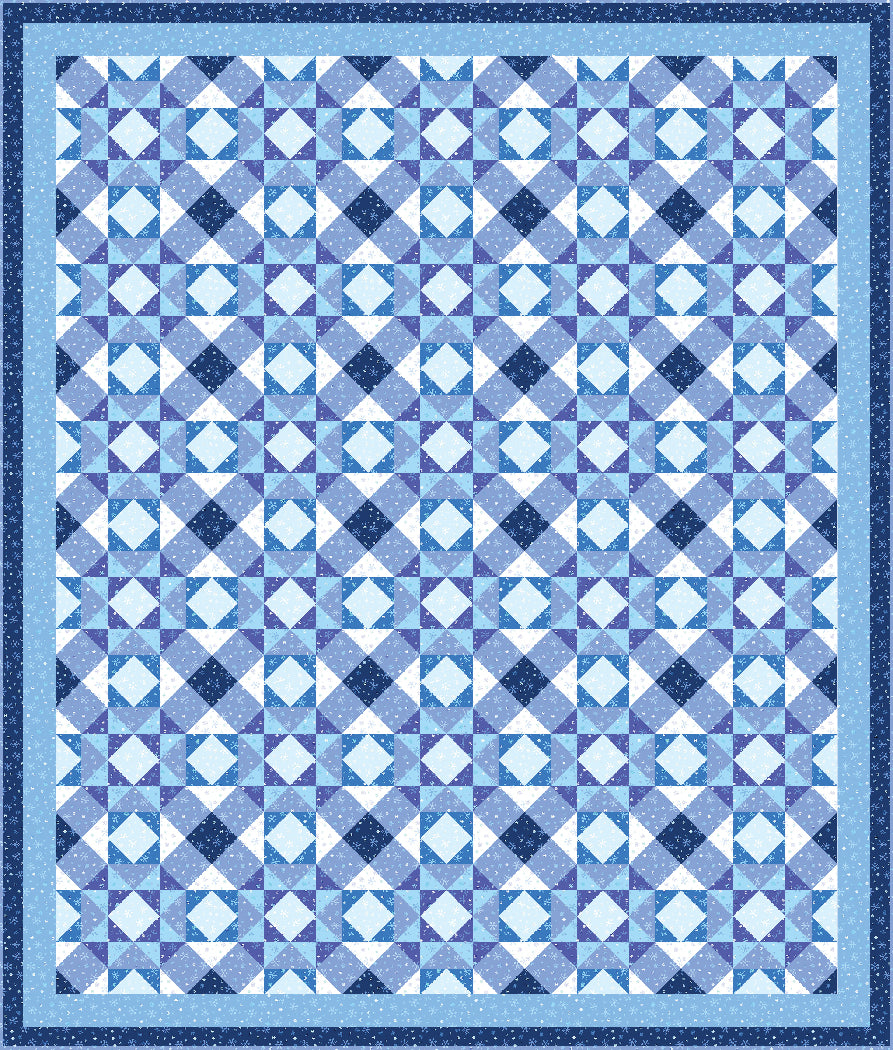 Quilt image features the "Snowflake" fabric line from Andover Fabrics.