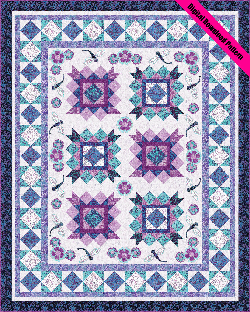 Dragonflies & Posies Pieced/Appliqued Quilt Pattern | Fabric Kit