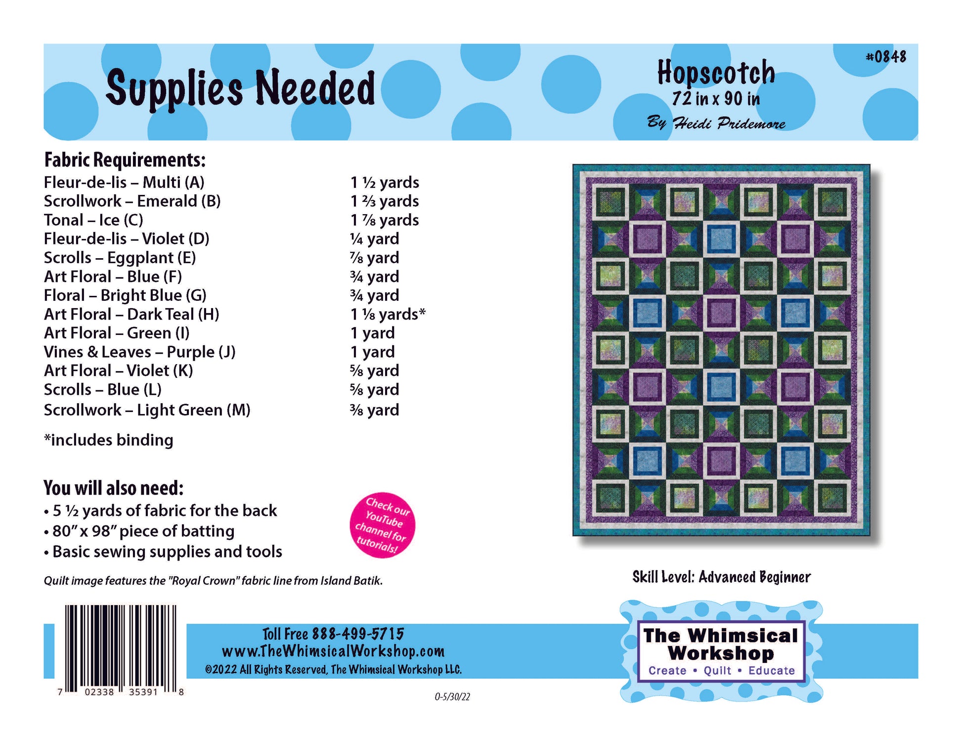 Play with color and movement in the Hopscotch Quilt Pattern and Fabric Kit, designed by Heidi Pridemore for The Whimsical Workshop. This 72" x 90" quilt features Royal Crown, Heidi’s signature batik collection from Island Batik, and is perfect for advanced beginners. Using traditional and simple strip piecing techniques, this pattern creates a dynamic, easy-to-follow layout.