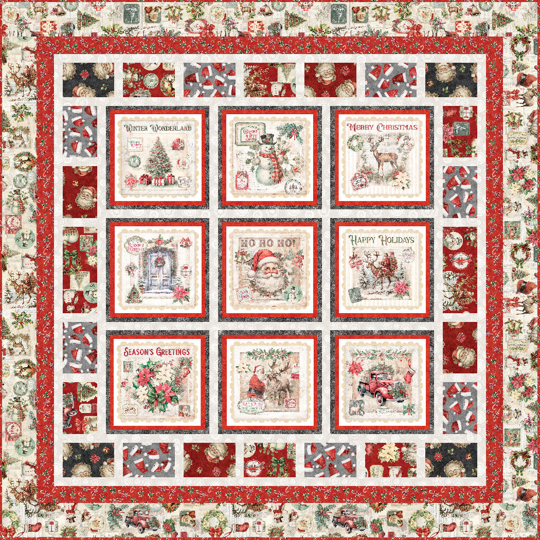 Sew a festive 62" x 62" holiday quilt with the Letters to Santa pieced pattern by Matthew Pridemore. Featuring the Holly Jolly fabric collection and vintage Santa block panels, this advanced beginner project brings nostalgic charm to your seasonal décor. Perfect for adding a cozy holiday touch!