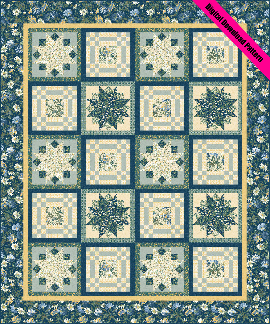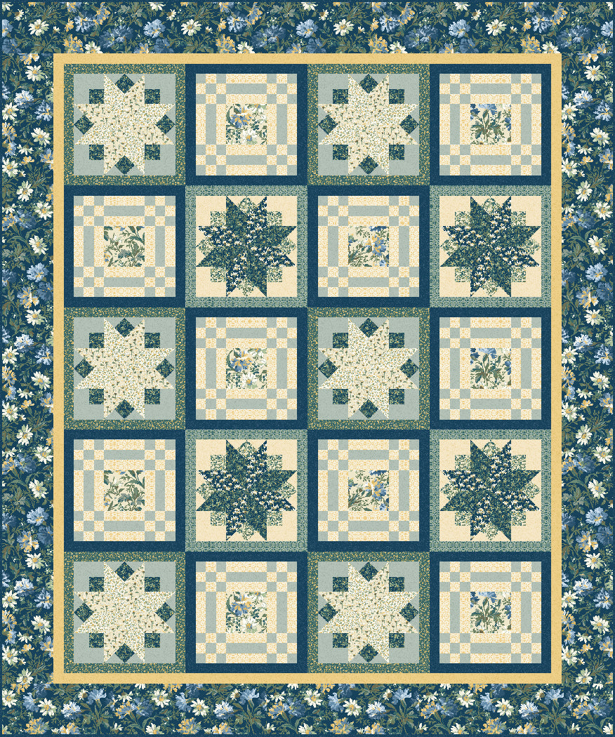 Quilt image features the "Willoughby" fabric line from Maywood Studio.