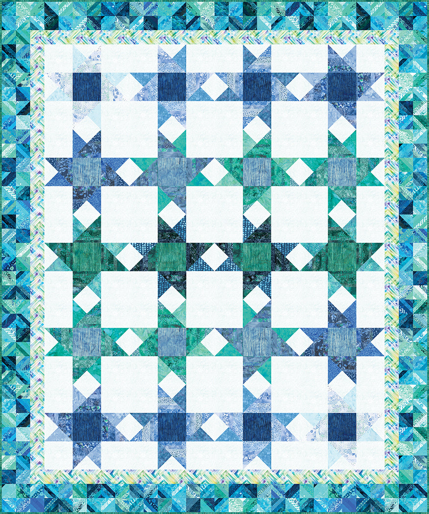 Crashing Waves is a quilt pattern by Mathew Pridemore for The Whimsical Workshop. This 60" x 72" quilt is great for intermediate quilters, showcasing pieced, abstract, cool colors. It features fabrics from the "Waves" fabric line from Hoffman California Fabrics.