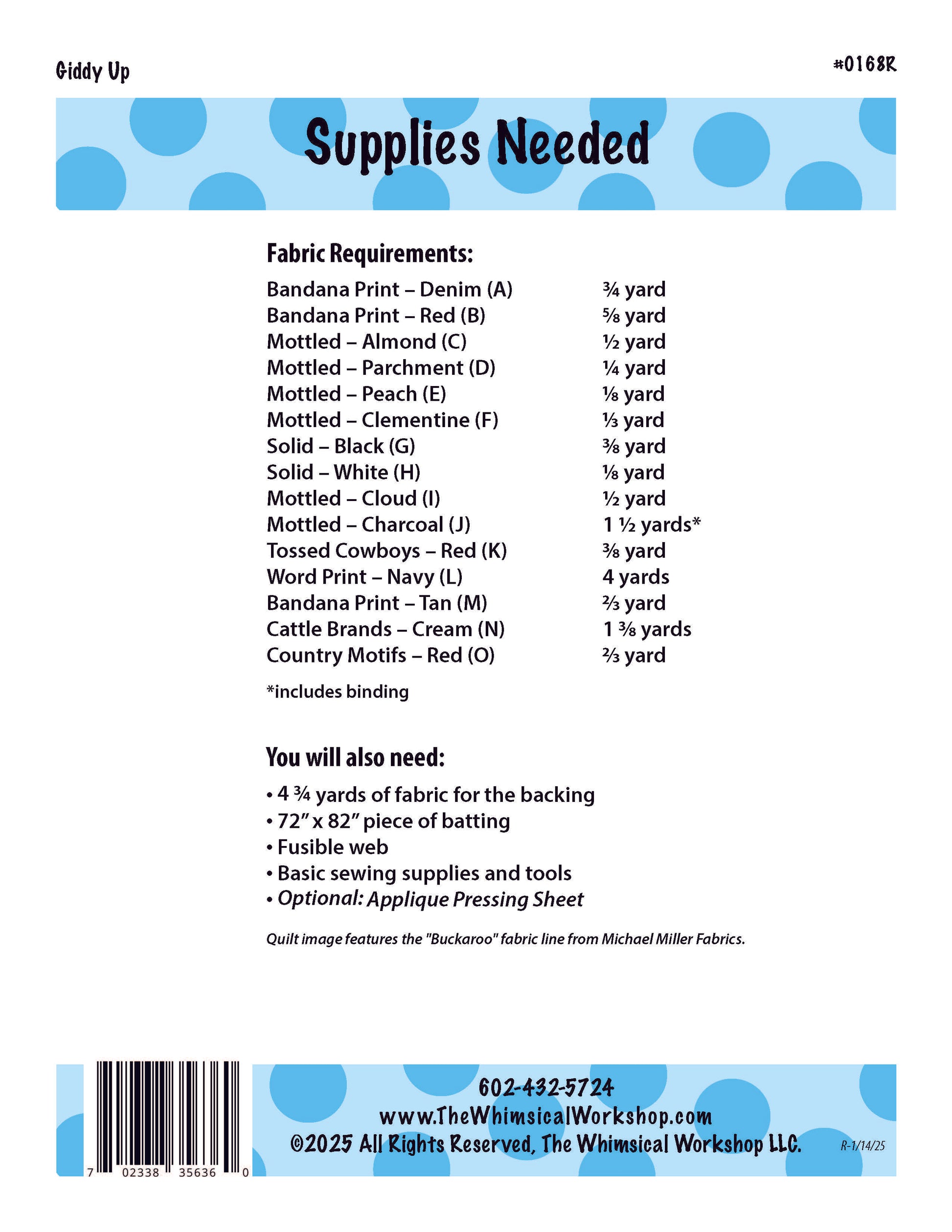 - Fabric Line: Buckaroo fabric collection from Michael Miller Fabrics