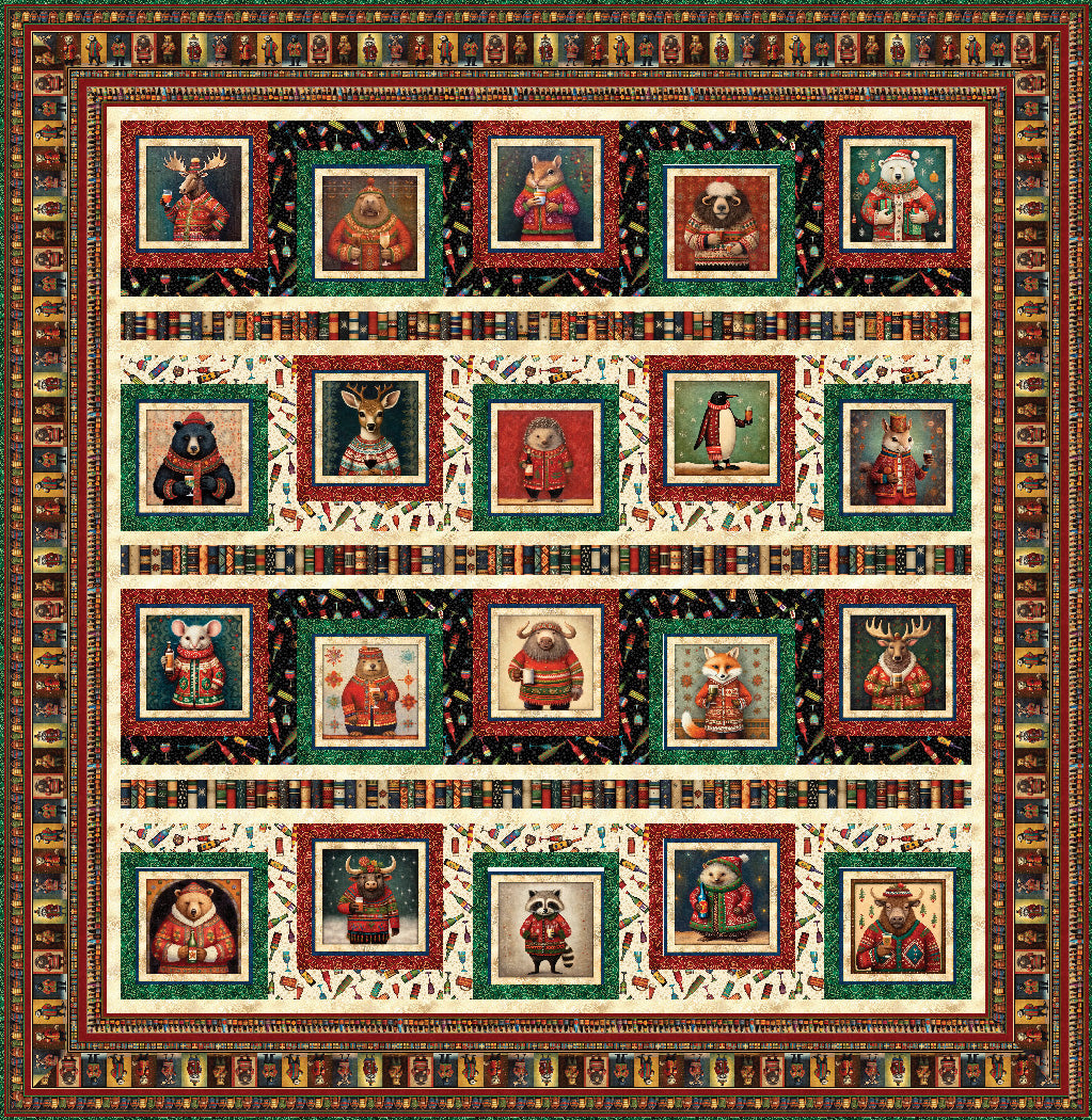 Quilt image features the "Christmas Party Animals" fabric line from QT Fabrics.