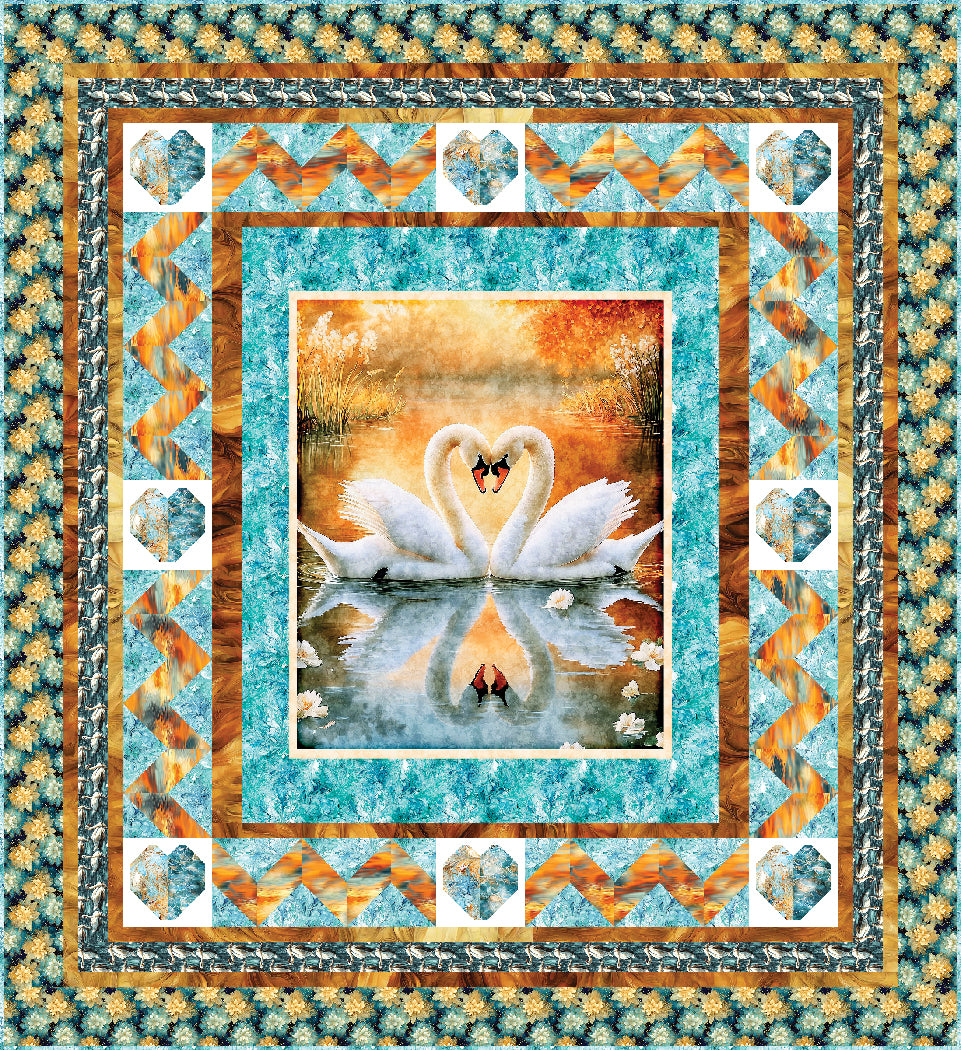 The Love on the Lake quilt pattern by Matthew Pridemore celebrates tranquility and nature’s beauty. Measuring 60" x 72", this advanced beginner pattern features Swan Song fabrics from QT Fabrics. A soothing design, it’s ideal for showcasing elegant prints while practicing piecing skills.