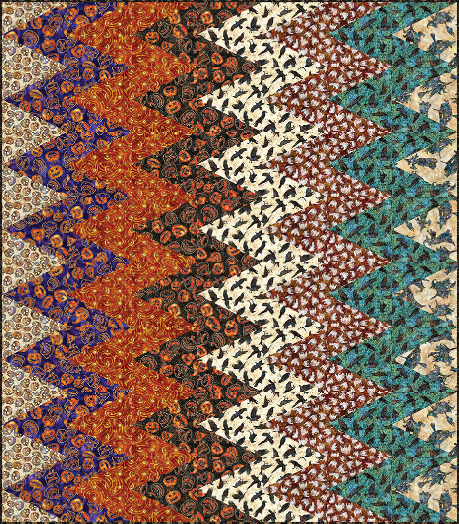 Quilt image features the "Dark Magic" fabric line from QT Fabrics.