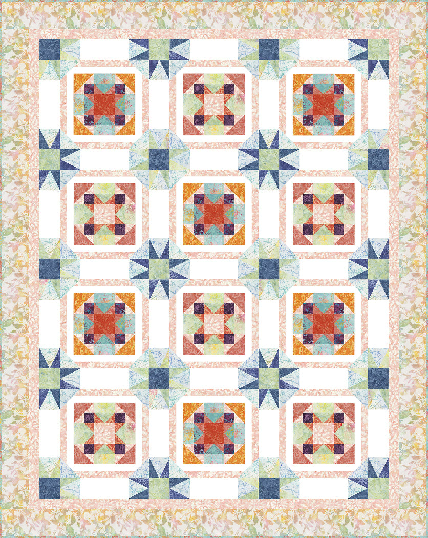 Quilt image features the "Tonga Melonberry" fabric line from Timeless Treasures.